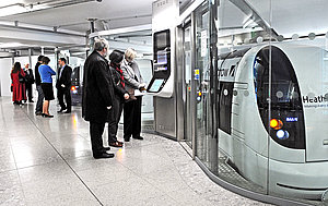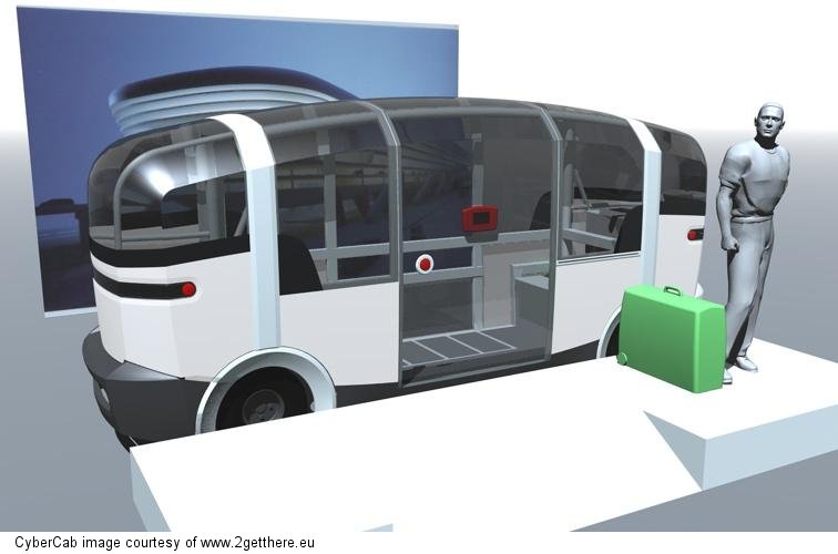 Apr 25, 2009 - A number of videos posted on YouTube show the ULTra system at Heathrow airport, London (via Kinetic Network PRT). The video labeled "LHR PRT 4 Trip from T5" shows a trip along the full length of the system from Terminal 5 to one of the two parking lot stations. Jan 19, 2009 - Photos of Masdar Automated Road Vehicle have been posted on Flickr (via Kinetic Network PRT). Jan 11, 2009 - Presentation on Initial Applications for Automated Vehicles on Exclusive Roadways was given at the annual technical meeting of the Advanced Transit Association in Washington, DC. Dec 30, 2008 - Possible Automated Road Vehicle application added. It would serve a station on a planned BRT or LRT line outside of Washington, DC. Dec 23, 2008 - Possible Automated Road Vehicle application for College Park, Md has been updated with more detail added. Dec 6, 2008 - Video spotted on YouTube showing tests of the ParkShuttle driverless minibus near Rotterdam during the first half of 2008. Nov 17, 2008 - Model of possible Automated Road Vehicle for Masdar, Abu Dhabi, spotted on Flickr (from Kinetic Network PRT). It may be a restyled version of the ULTra 4-passenger Personal Rapid Transit vehicle. Update Jan 25, 2009: Apparently this is not the ULTra vehicle. Instead it was developed by 2getthere, although it does not look like the PRT computer image on their web site. June 20, 2008 - Web page on Automated Microbus stations has been updated to describe how vehicles can resolve conflicts without central control.